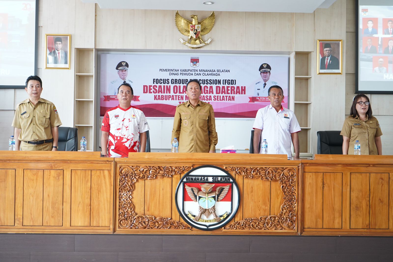 Bupati Minahasa Selatan Bpk. Franky Donny Wongkar, SH., membuka secara resmi Kegiatan Focus Group Discussion (FGD) Desain Olahraga Daerah Kabupaten Minahasa Selatan Yang menghadirkan Narasumber Wakil Dekan Kemahasiswaan Fakultas Ilmu Keolahragaan Dan Kesehatan Masyarakat Universitas Negeri Manado Bpk DR. Marnex Berhimpong, M.Kes, AIFO., yang juga Juga Sebagai Ketua Bidang Pembinaan Dan Prestasi Koni Sulawesi Utara, Sekaligus Ketua Bidang Perencanaan Dan Program Satgas Pon Aceh-Sumut.