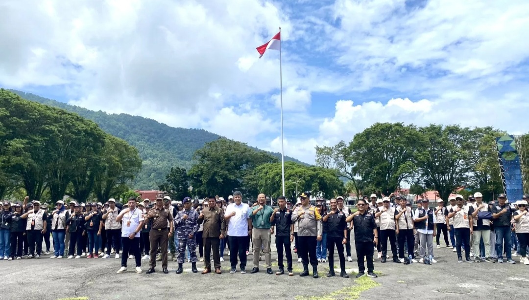 Acara ini berlangsung di Lapangan Santiago Tahuna dengan dihadiri Forkopimda, OPD, serta diikuti ratusan peserta dari Panwaslu kecamatan dan kelurahan/desa.
