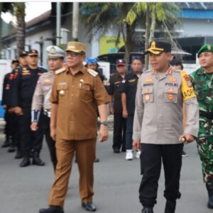 Kapolres Kotamobagu AKBP Irwanto didampingi pejabat Walikota Kotamobagu Abdullah Mokoginta serta Dandim 1303 Bolmong Letkol. Inf. Fahmil Harris mengecek langsung personil gabungan yang akan melaksanakan pengamanan pergantian tahun diwilayah hukum Polres Kotamobagu.