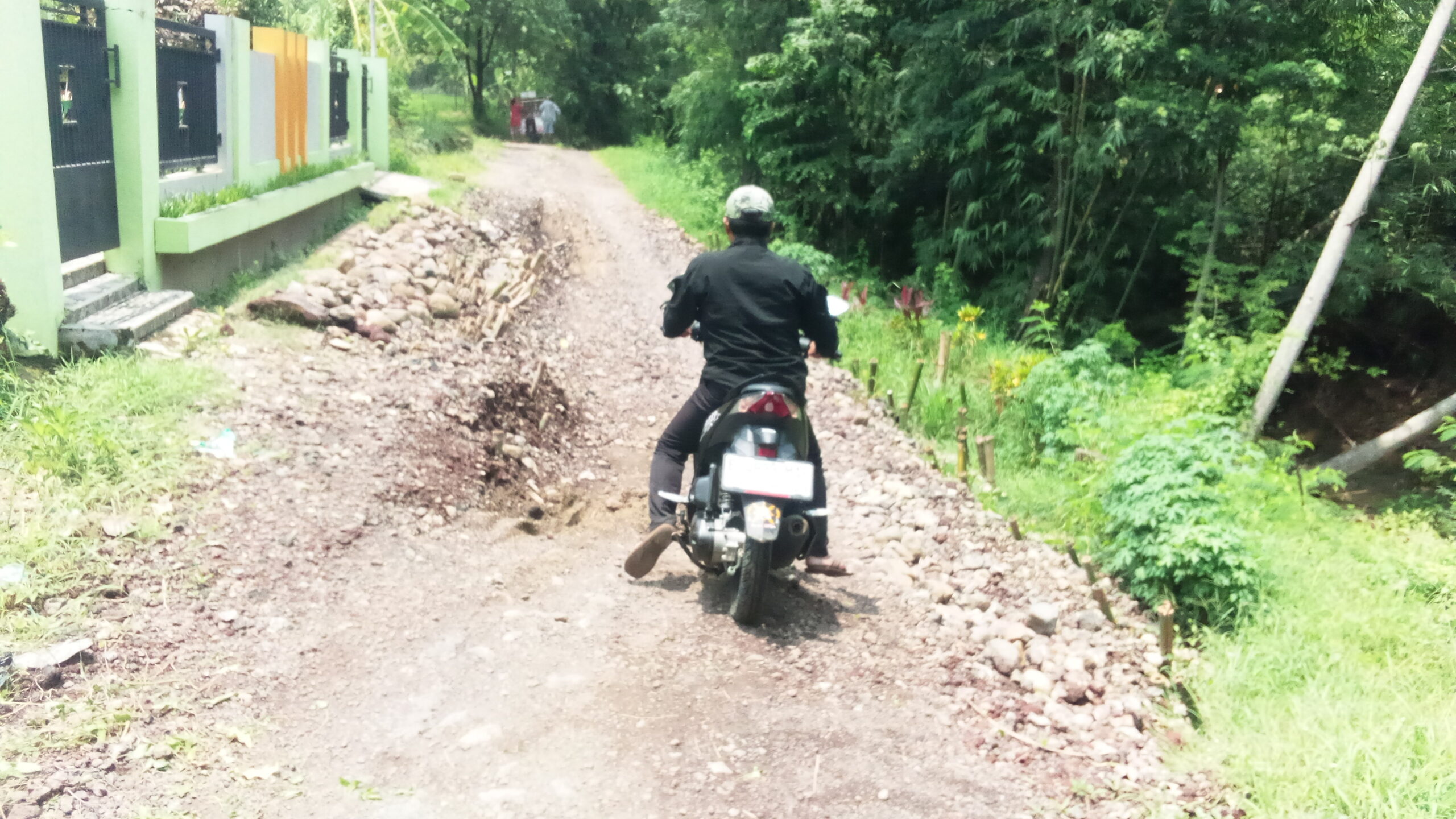 “Akses untuk warga yang akan lewat itu susah. Kasihan kalau ada warga yang mau periksa kesehatan atau urusan mendesak lainnya lewat jalan itu,” kata warga sekitar.