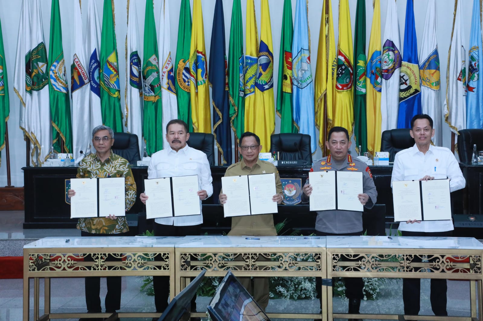 Liputanberita62.com- JAKARTA. Menteri Dalam Negeri (Mendagri) Muhammad Tito Karnavian menandatangani Nota Kesepahaman tentang Kerja Sama dalam Pengawasan Penyelenggaraan Perizinan di Daerah. Penandatanganan itu dilakukan Mendagri bersama Jaksa Agung, Kapolri, Ketua Komisi Pemberantasan Korupsi (KPK), serta Badan Pengendalian Pembangunan dan Investigasi Khusus (BPPIK).