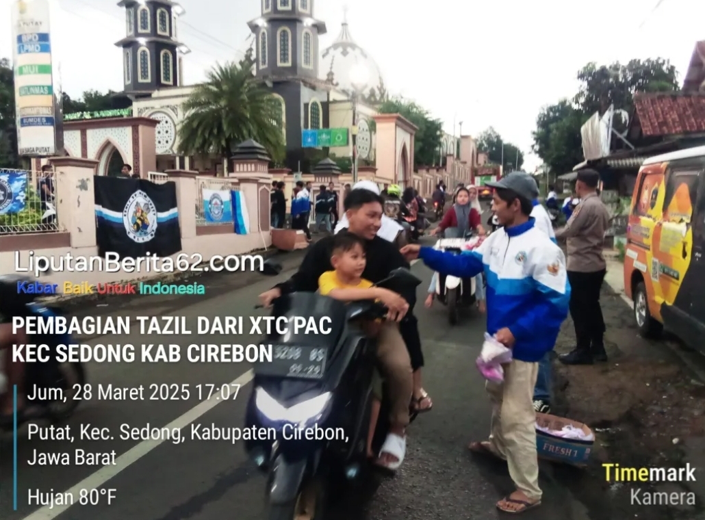 Liputanberita62.com – CIREBON. Kebersamaan dan semangat berbagi kembali ditunjukkan oleh anggota XTC PAC Kecamatan Sedong, Kabupaten Cirebon, dalam aksi berbagi takjil di bulan Ramadhan 1446 H. Kegiatan ini berlangsung pada Jumat, 28 Maret 2025, di Jalan Putat – Sindanglaut, Desa Putat Turut hadir dalam kegiatan ini Ketua PAC XTC Sedong,Anggota Polsek Sedong Iptu Supri.