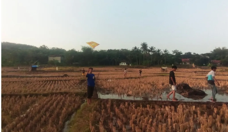 Cuaca berangin tersebut menjadi berkah tersendiri bagi warga, terutama di Desa Putat Dan Panambangan, Kabupaten Cirebon. Puluhan orang dari berbagai usia, mulai dari anak-anak hingga dewasa, memadati area pesawahan untuk menerbangkan layangan.