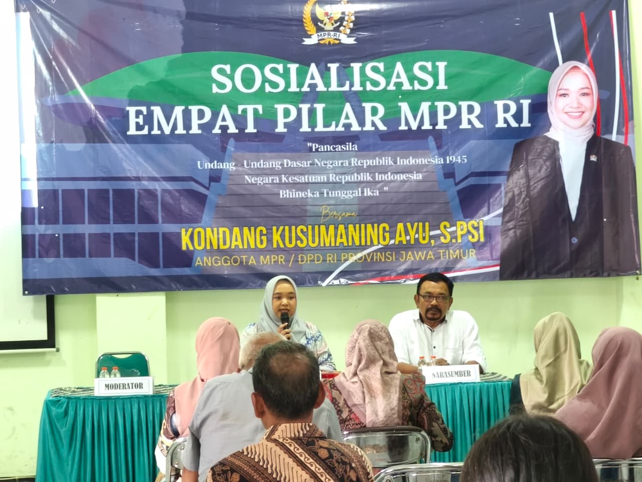 Malang – Liputanberita62com Di tengah tantangan krisis nilai kebangsaan dan maraknya ujaran kebencian berbasis SARA, Sosialisasi Empat Pilar MPR RI yang digelar Anggota DPD RI Perwakilan Jawa Timur, Kondang Kusumaning Ayu, S.Psi, di Kota Malang menjadi ruang strategis untuk menjajaki peluang penguatan implementasi nilai-nilai Pancasila melalui dunia pendidikan.