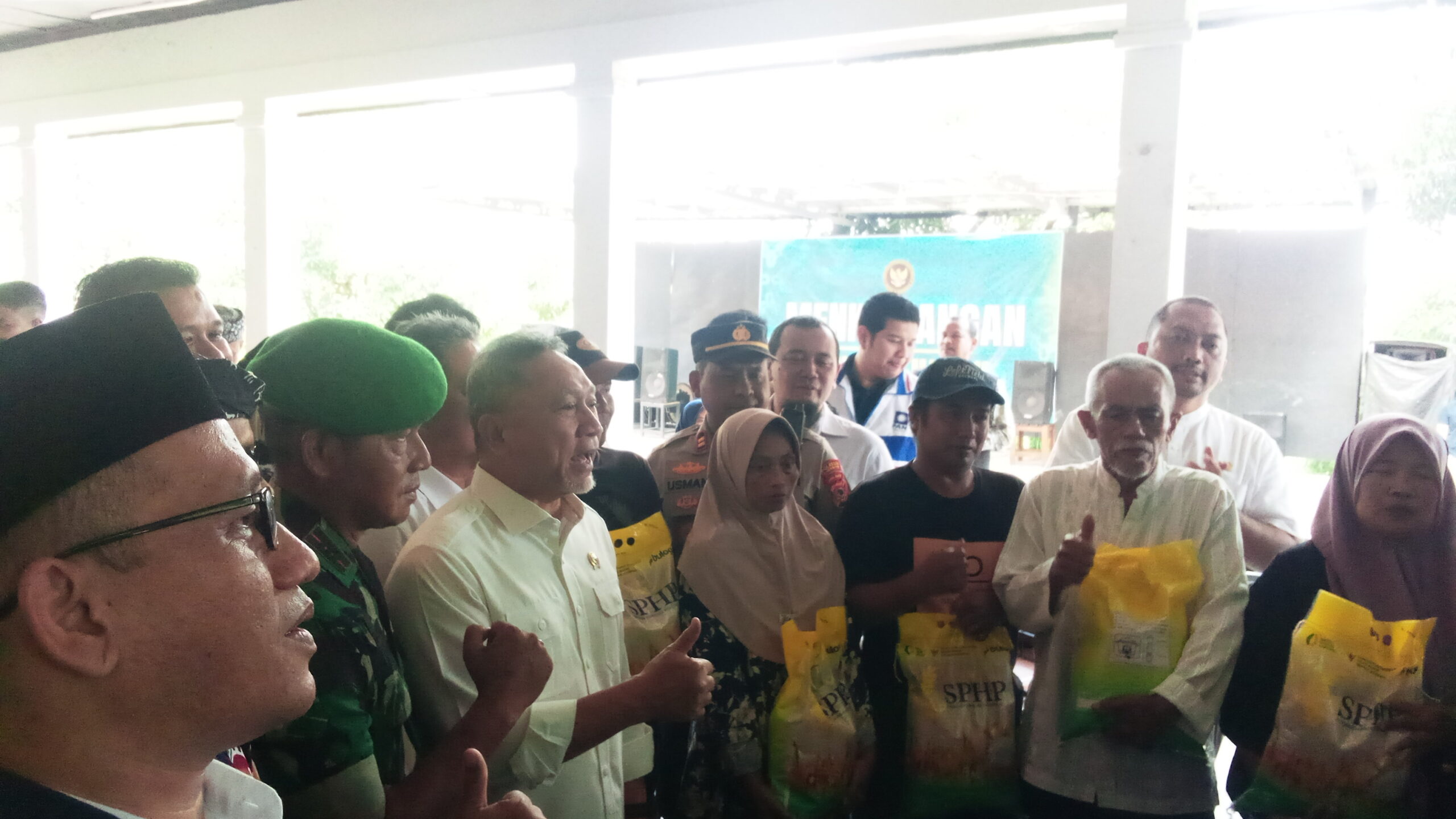“Ini hadiah untuk tahun baruan, dapat beras sama amplop. Semoga bermanfaat,” ujar Zulhas di hadapan ratusan petanil.