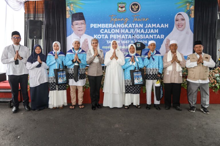 110 orang Calon Jemaah Haji Kota Pematangsiantar Tahun 1447 H/2026 M ditepung tawar di rumah dinas wali kota, Jalan MH Sitorus Kelurahan Teladan Kecamatan Siantar Barat, Senin (20/04/2026). Sebanyak 110 jamaah calon haji siap berangkat ke Tanah Suci tahun ini.