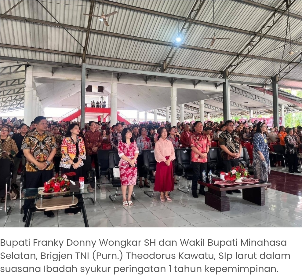 Satu tahun perjalanan kepemimpinan tersebut menjadi momentum refleksi bagi Pemerintah Kabupaten Minahasa Selatan untuk meneguhkan komitmen dalam menjalankan arah pembangunan daerah yang berlandaskan visi besar “Mewujudkan Minahasa Selatan yang Semakin Maju, Sejahtera, dan Berkelanjutan.”