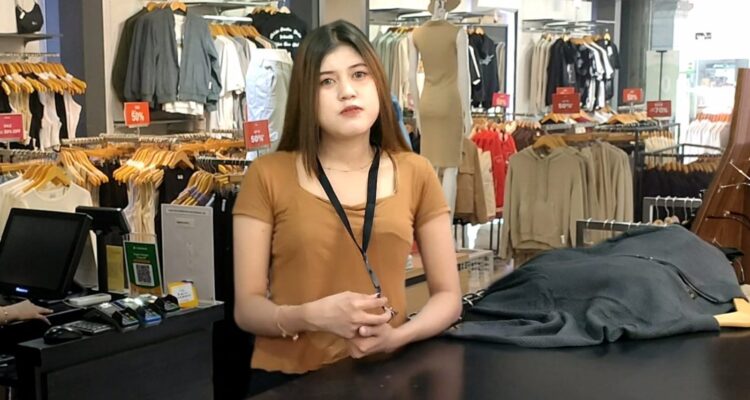 Rina Mamonto salah satu penjual pakaian di salah satu ruko di kawasan bisnis Megamas Manado, sepi pembeli sejak Sulawesi Utara alami deflasi. Liputanberita62.com – MANADO. Tiga bulan mendekati momen Natal