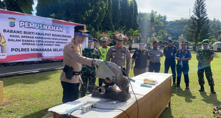 Liputanberita62.com- MINSEL. Polres Minahasa Selatan (Minsel) melaksanakan kegiatan pemusnahan barang bukti knalpot tidak sesuai spesifikasi teknis atau knalpot brong/bising, Jumat siang (20/12/2024), di halaman utama Polres Minsel. Acara pemusnahan dihadiri